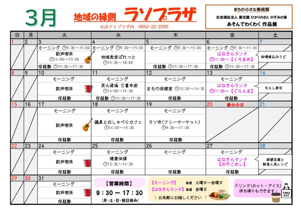 (祝祭日・年末年始・お盆、および アイプラザ休業日はお休みします)