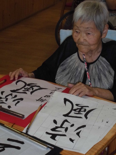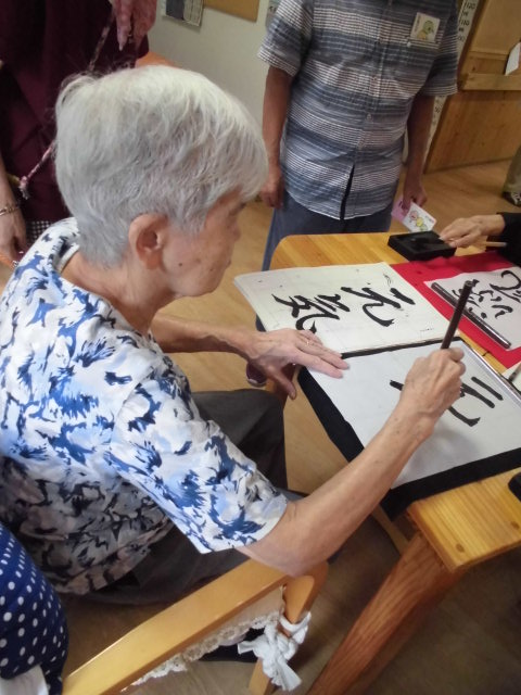 墨汁を付けて、筆で字を書くことがお好きな利用者さん![]()