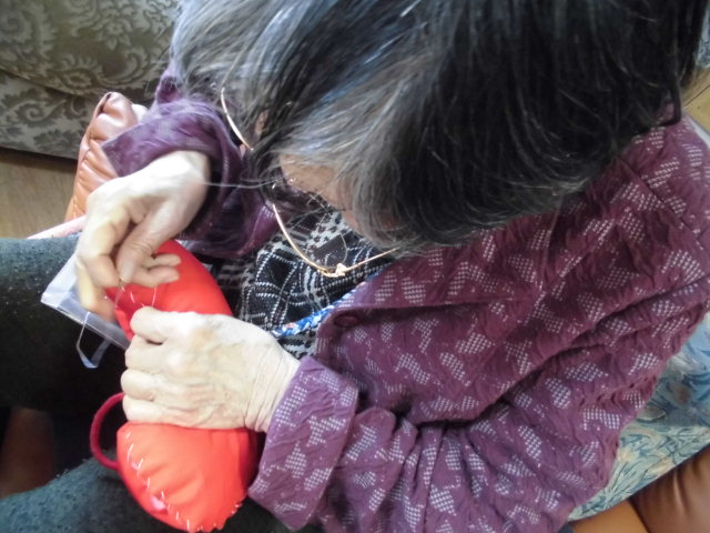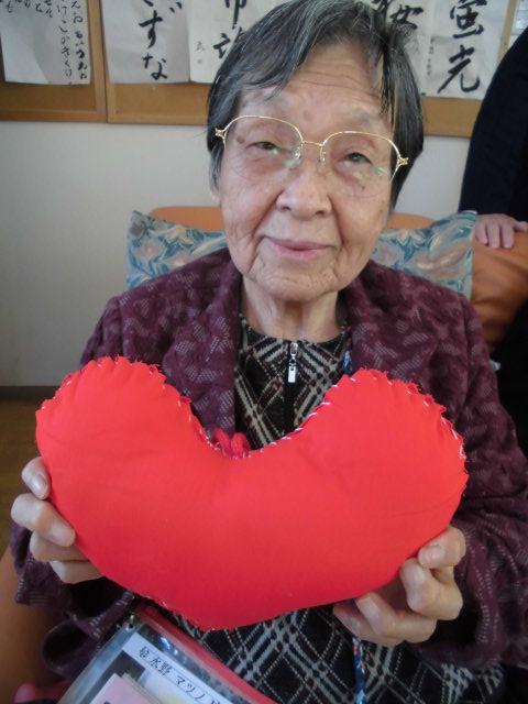赤い生地があったので、即席でハートクッションを作っちゃいました![]()