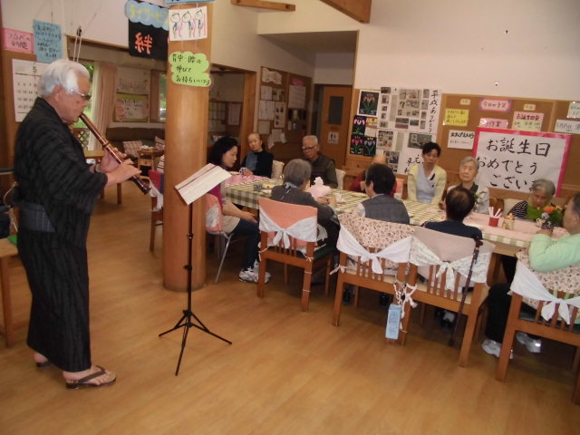 と、着物姿に尺八を持参されての来所