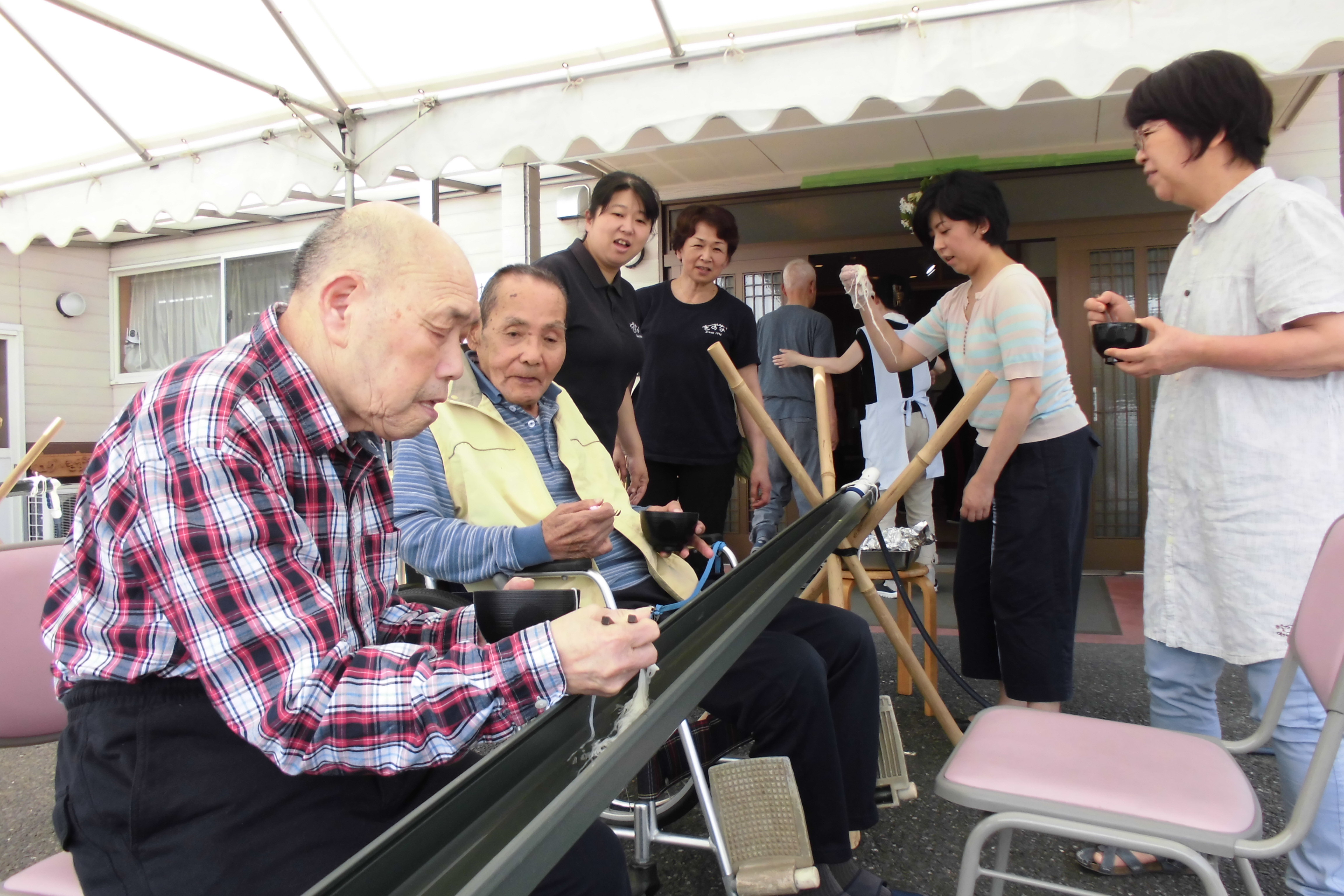 流しそうめん 2019年8月30日 最終更新日時 : 2019年8月30日 ブログスタッフ 夏の恒例行事です。 流れてくるそうめんをすくうのには、集中力がいります 指先に力を入れて、はしを持って待つ姿は、皆様凛々しい 暑い日の冷たいそうめんは喉こしも抜群ですね