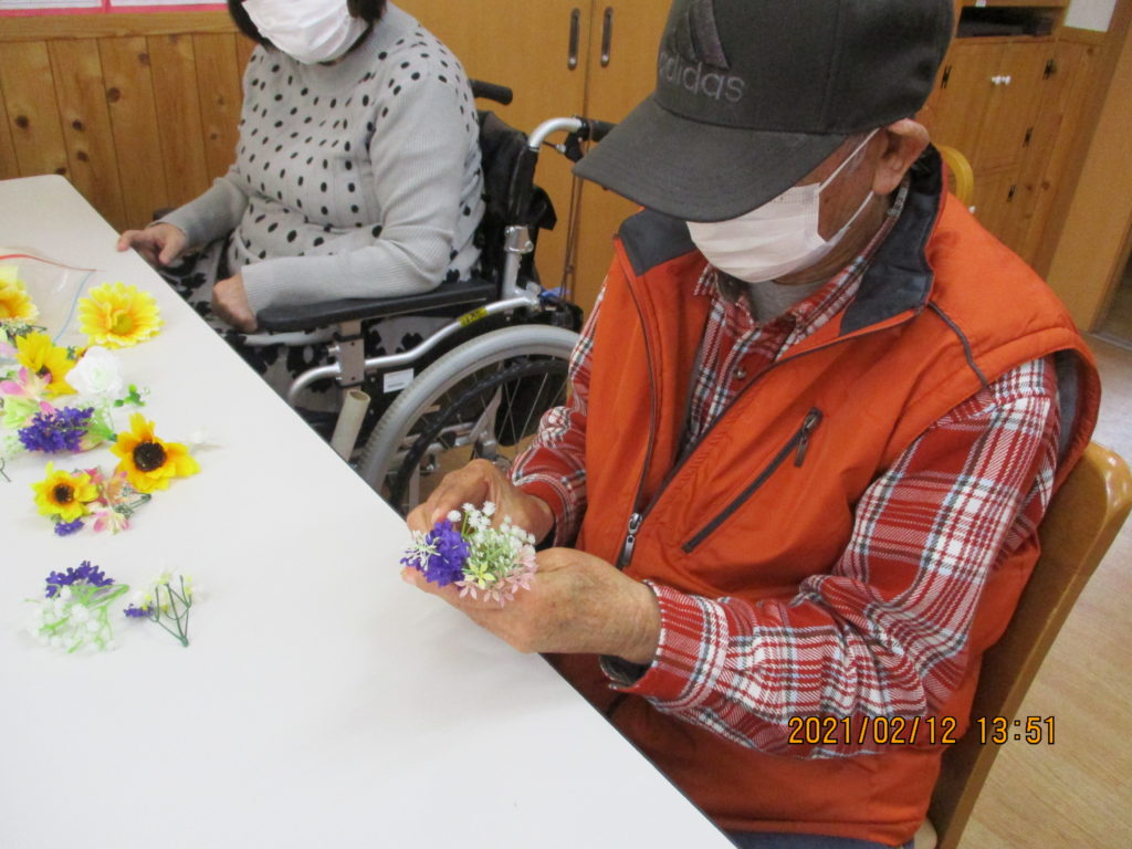 お花が大好きなRさんのために、心を込めて男性利用者さんが作ってくださいました。