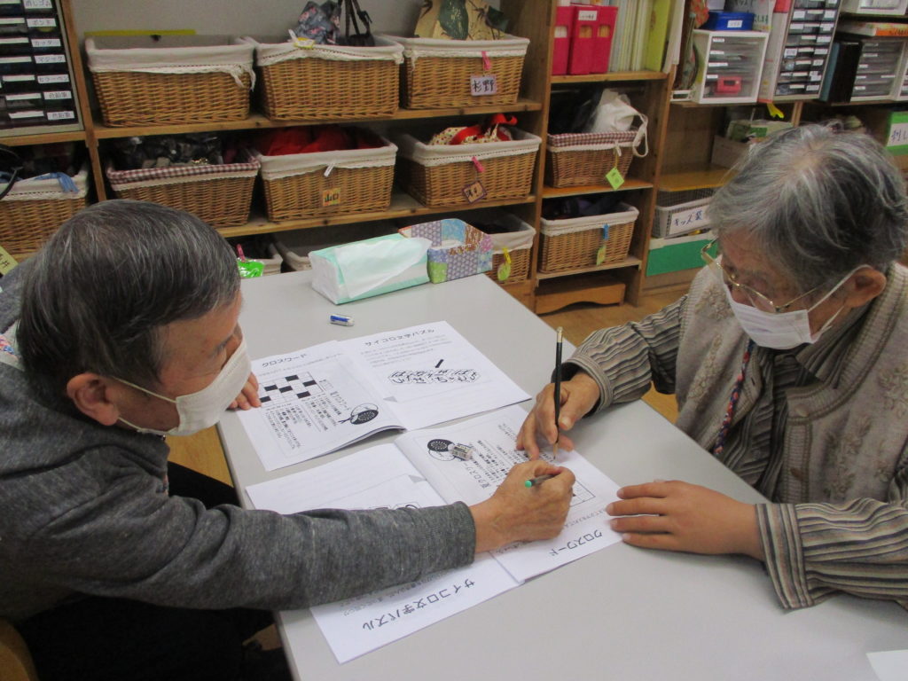 お二人で協力しながら、クロスワードを解いてみえます。たすけあい💛