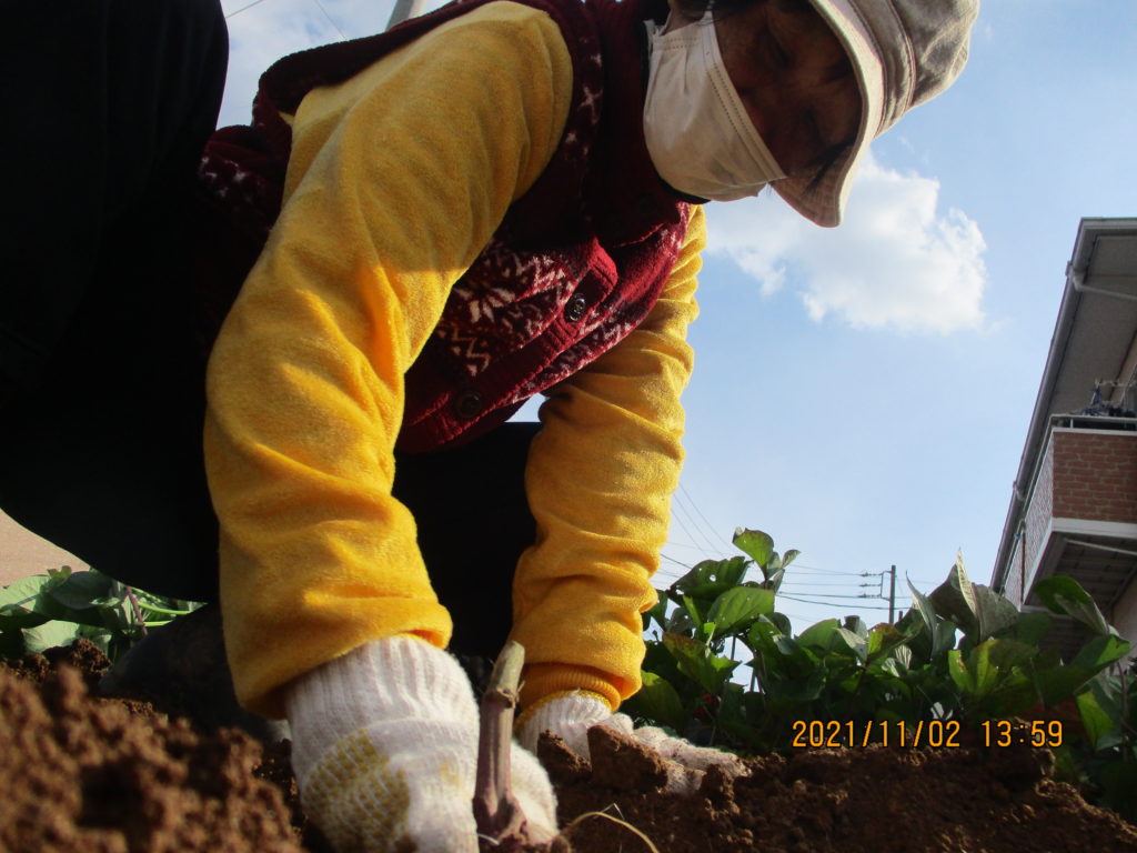 さつまいも1畝を掘ります。