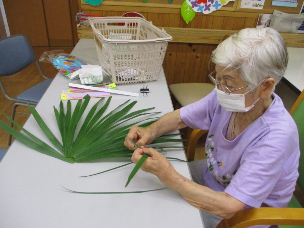 シュロの葉を使って七夕飾りのこよりを作りました。願い事は…✨✨✨