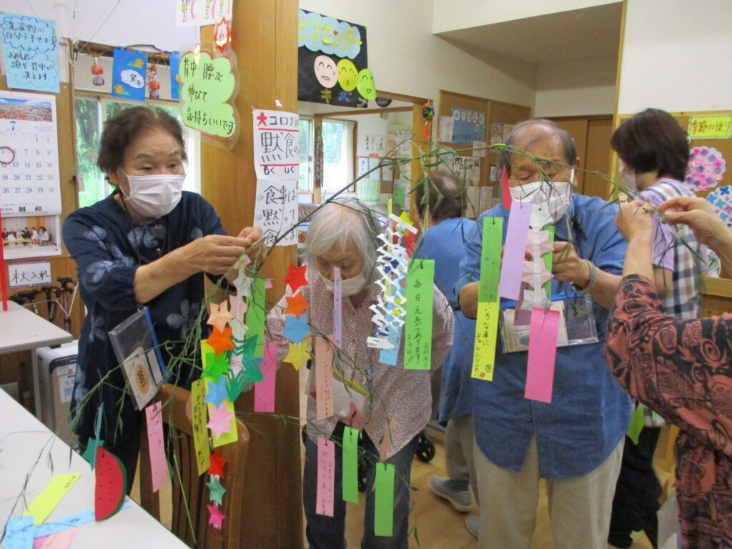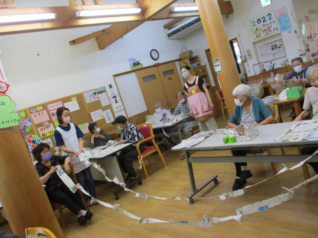 七夕会では「新聞どこまでちぎれるかなゲーム」「輪っかリレーゲーム」