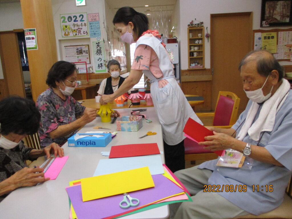 8月恒例の夏祭りに備えて、ちょうちん作りが始まりました。