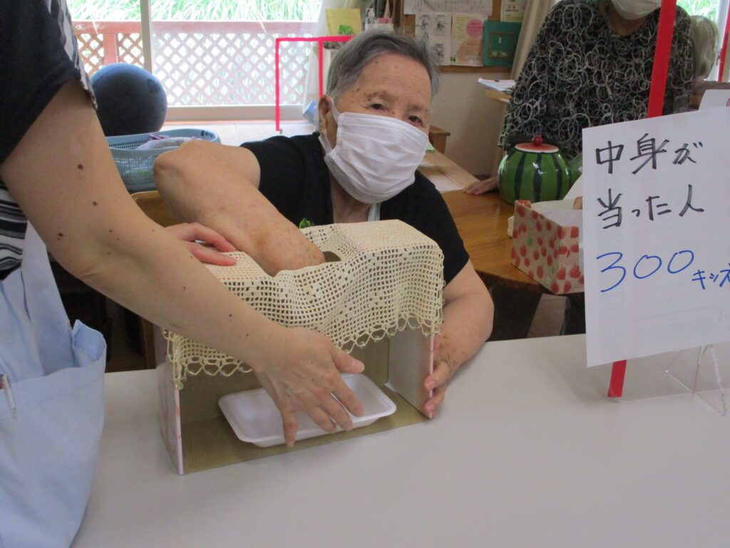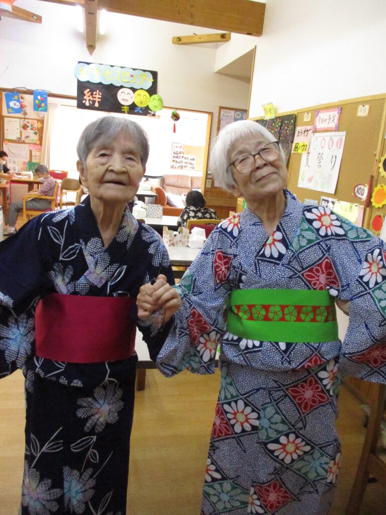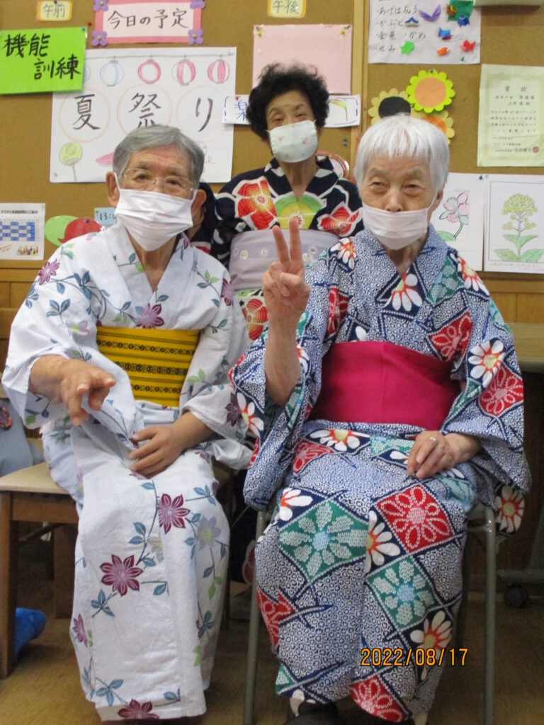 夏祭り週間はゆかたを着ていただきました。背すじも自然に伸びてます。