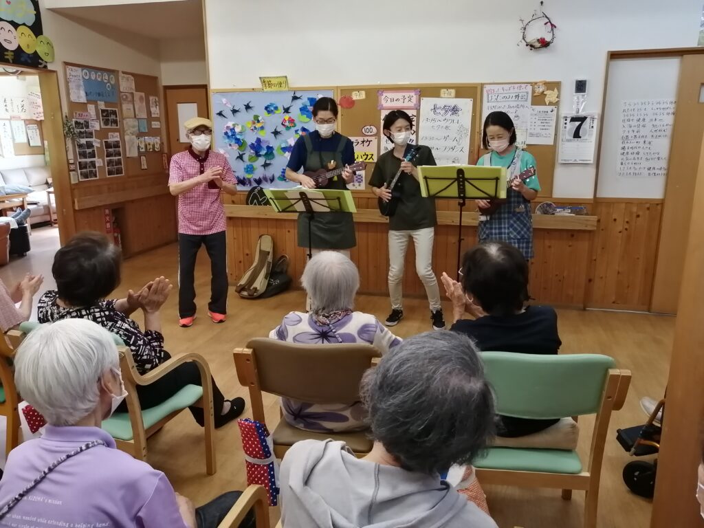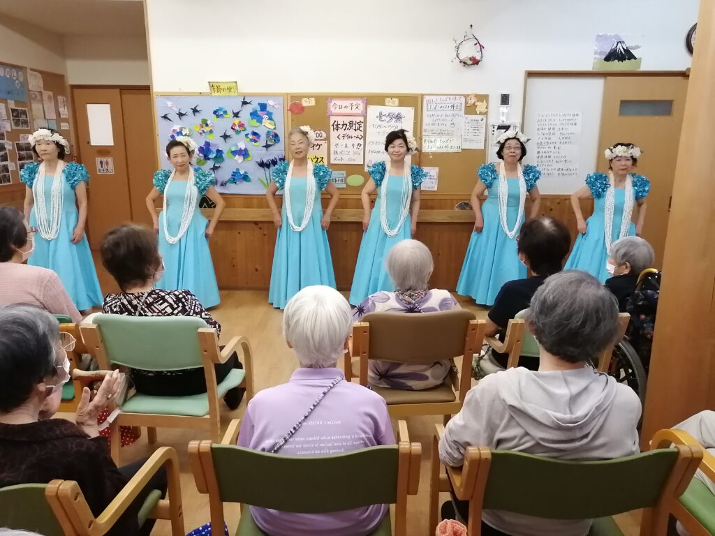 「七夕会」にはゲストにフラダンスグループの皆さんをお招きし、踊りを教わりました✨ 素敵な衣装と優雅なダンスに皆さんもうっとり😍