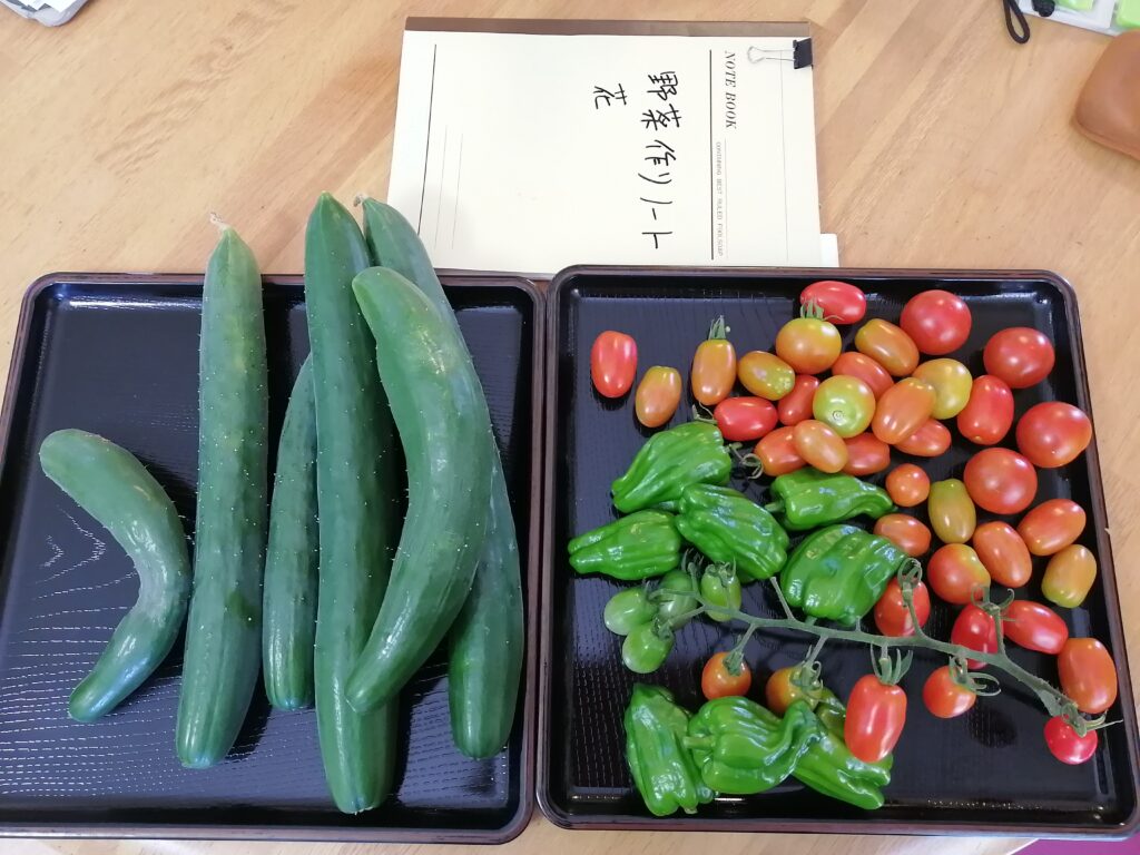 5月に植えた夏野菜も立派に実りました😀 一緒に苗を買いに行き、植え付けし、水やり、草取りと手をかけて育ててきました。次の目標は秋冬野菜の栽培だそうです。