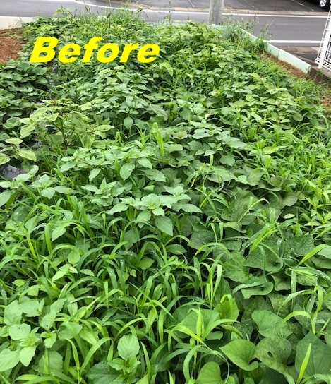 毎週日曜日の朝、集まって草とりするだけではとてもとても間に合いません。