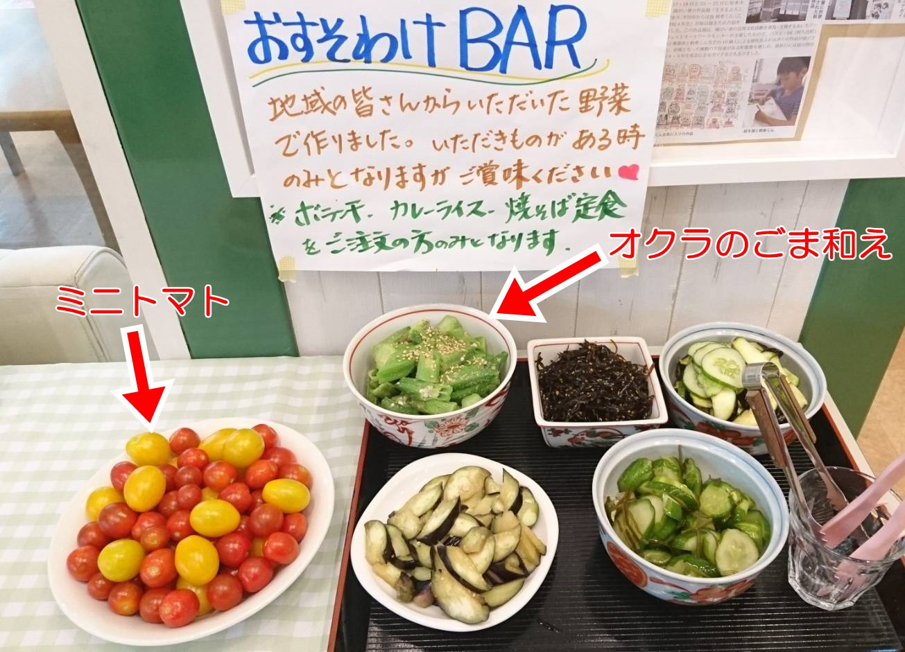 ラソ・プラザのランチには、いただきものの野菜を使った「おすそわけBAR」という人気コーナーがあります。