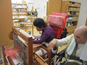 今月になって、さをり織りをやりたくて大騒ぎしていたご利用者様のFさん