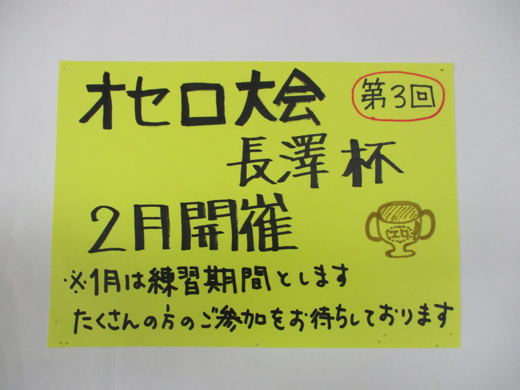 来月からは利用者様主催のオセロ大会を開催する予定です。参加者募集中!