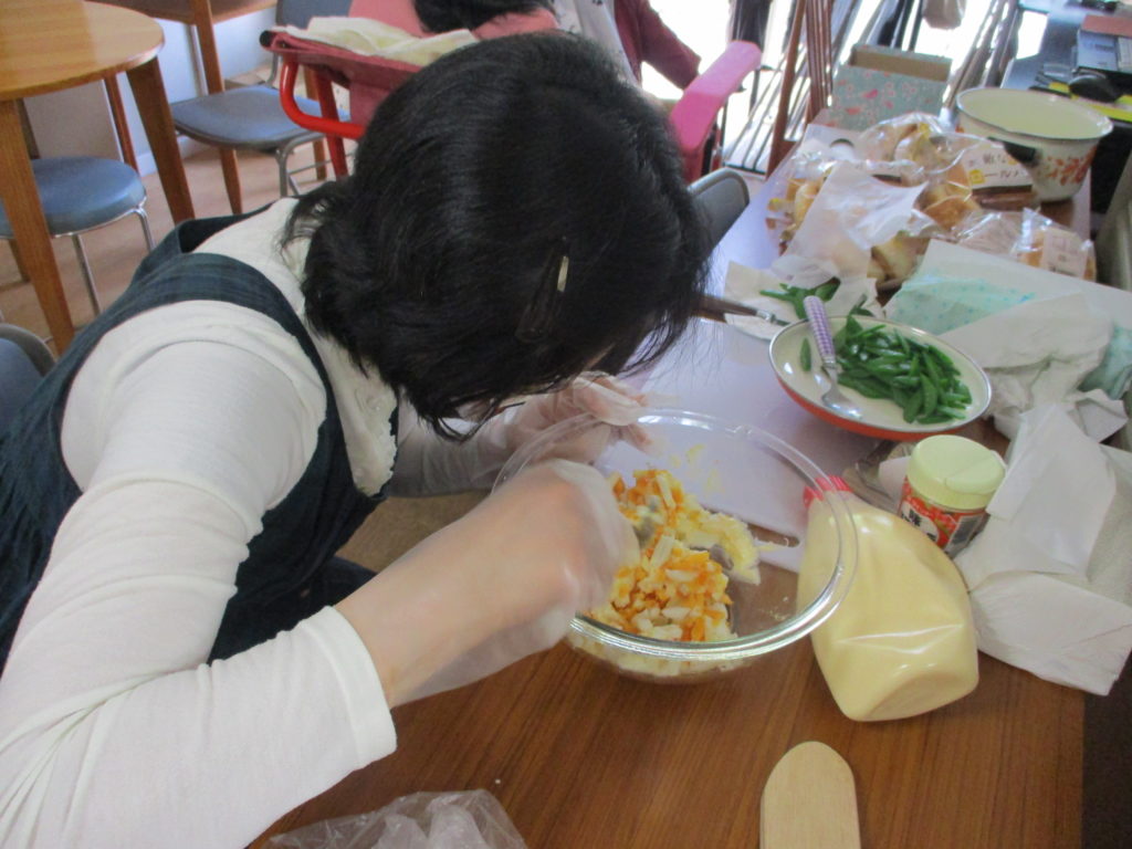 卵を茹でて、潰して、味付けて…