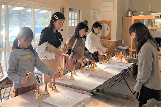 ミュージックベルは、振るだけで音が鳴り、楽譜が読めなくても演奏できる楽器です。