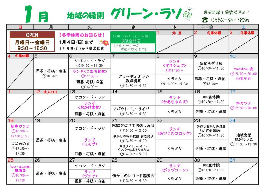 地域の縁側 グリーン・ラソで、お当番をしませんか?